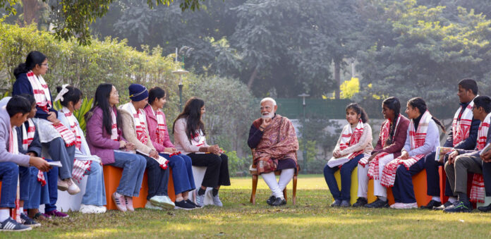 The Prime Minister welcomed the students at his residence with traditional Assamese gamosas. The programme was also screened at the Bal Yogi Auditorium in the Parliament complex.